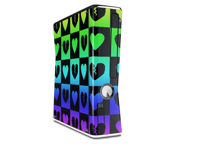 Love Heart Checkers Rainbow Decal Style Skin for XBOX 360 Slim Vertical