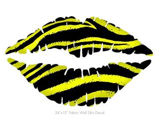Zebra Yellow - Kissing Lips Fabric Wall Skin Decal measures 24x15 inches