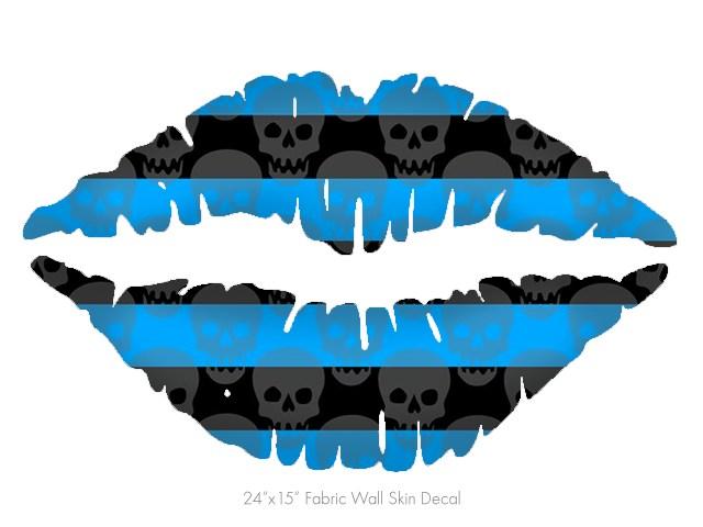 Skull Stripes Blue - Kissing Lips Fabric Wall Skin Decal measures 24x15 inches