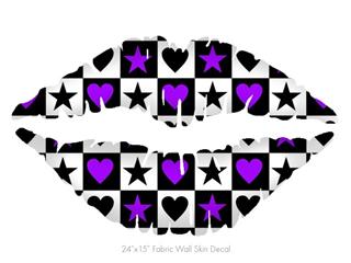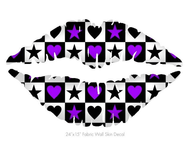 Purple Hearts And Stars - Kissing Lips Fabric Wall Skin Decal measures 24x15 inches