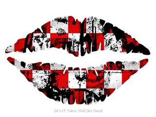 Checker Graffiti - Kissing Lips Fabric Wall Skin Decal measures 24x15 inches