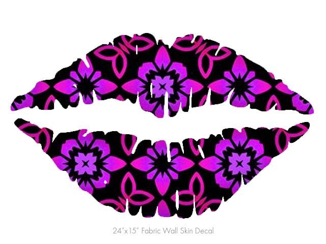 Pink Floral - Kissing Lips Fabric Wall Skin Decal measures 24x15 inches