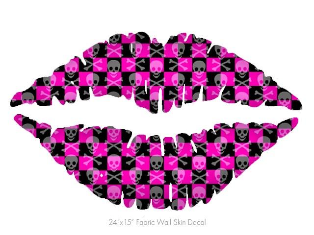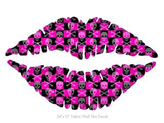 Skull and Crossbones Checkerboard - Kissing Lips Fabric Wall Skin Decal measures 24x15 inches