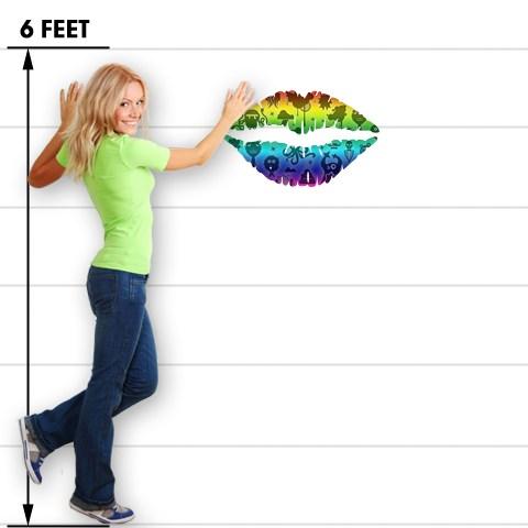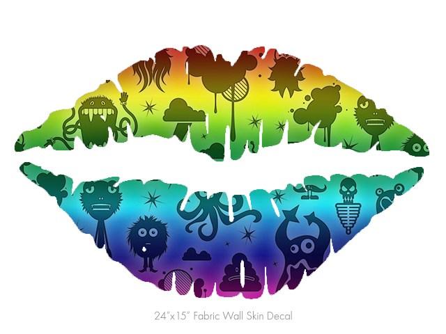 Cute Rainbow Monsters - Kissing Lips Fabric Wall Skin Decal measures 24x15 inches