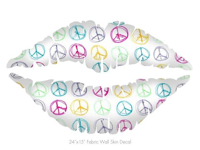 Kearas Peace Signs - Kissing Lips Fabric Wall Skin Decal measures 24x15 inches