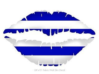 Psycho Stripes Blue and White - Kissing Lips Fabric Wall Skin Decal measures 24x15 inches