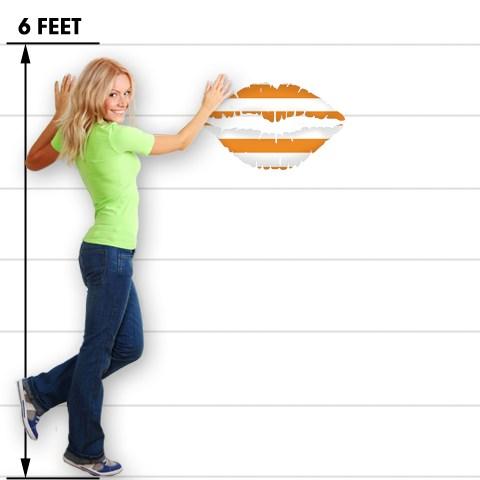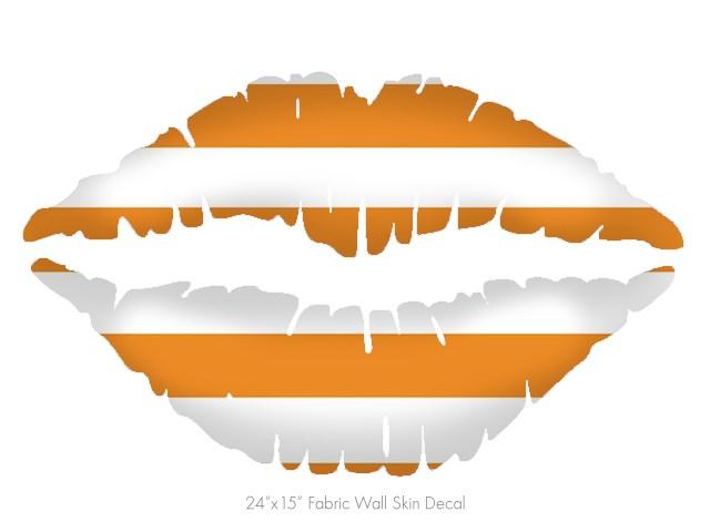 Psycho Stripes Orange and White - Kissing Lips Fabric Wall Skin Decal measures 24x15 inches