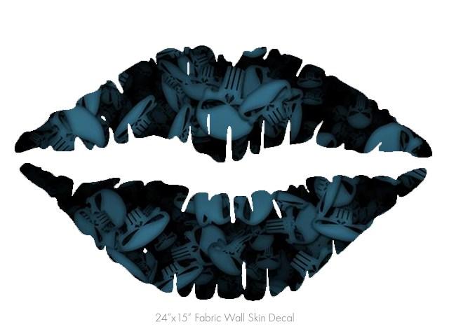 Skulls Confetti Blue - Kissing Lips Fabric Wall Skin Decal measures 24x15 inches
