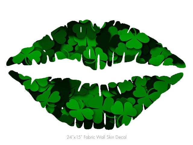 St Patricks Clover Confetti - Kissing Lips Fabric Wall Skin Decal measures 24x15 inches