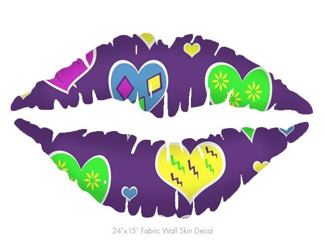 Crazy Hearts - Kissing Lips Fabric Wall Skin Decal measures 24x15 inches