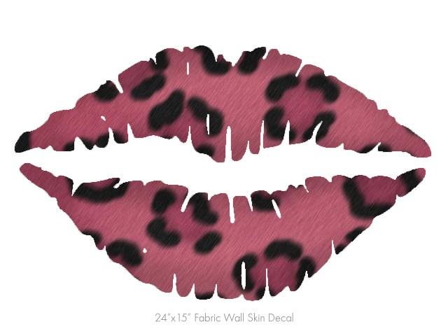 Leopard Skin Pink - Kissing Lips Fabric Wall Skin Decal measures 24x15 inches