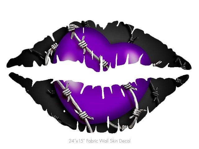 Barbwire Heart Purple - Kissing Lips Fabric Wall Skin Decal measures 24x15 inches