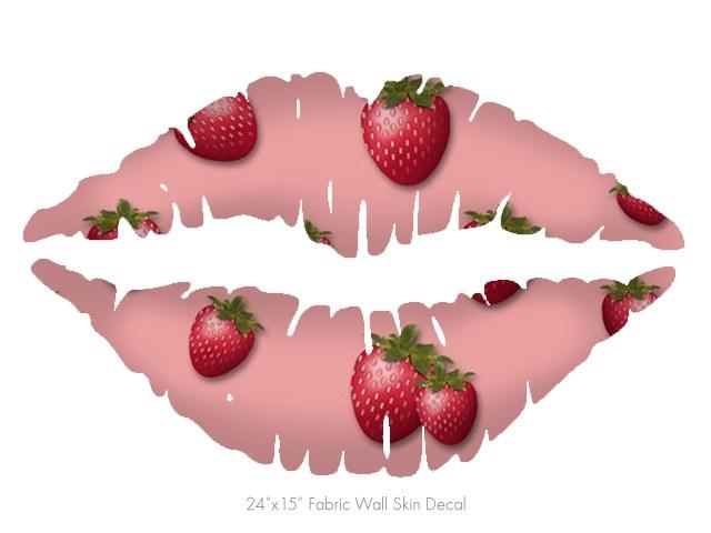 Strawberries on Pink - Kissing Lips Fabric Wall Skin Decal measures 24x15 inches