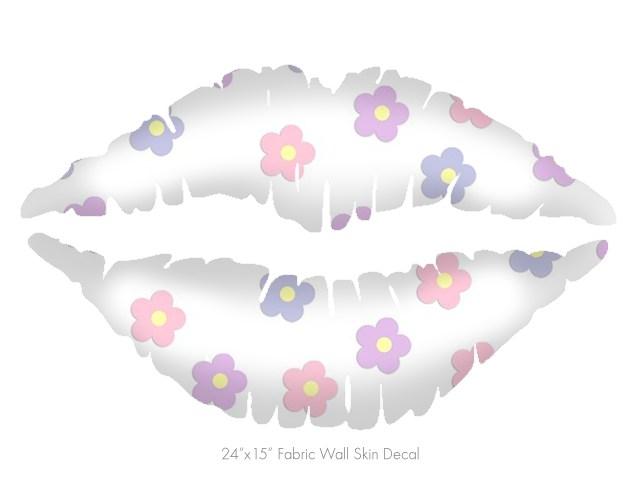 Pastel Flowers - Kissing Lips Fabric Wall Skin Decal measures 24x15 inches