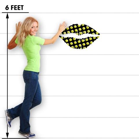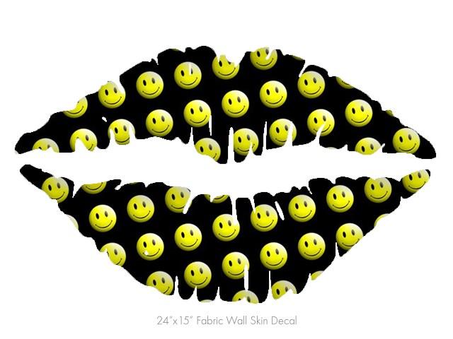 Smileys on Black - Kissing Lips Fabric Wall Skin Decal measures 24x15 inches