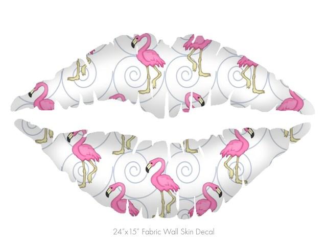 Flamingos on White - Kissing Lips Fabric Wall Skin Decal measures 24x15 inches