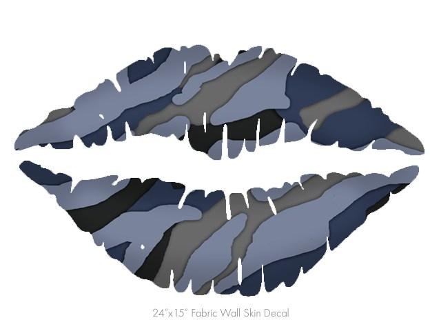 Camouflage Blue - Kissing Lips Fabric Wall Skin Decal measures 24x15 inches