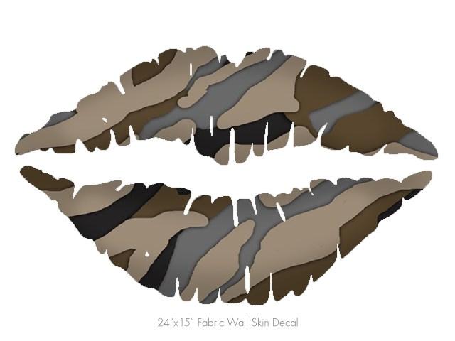 Camouflage Brown - Kissing Lips Fabric Wall Skin Decal measures 24x15 inches