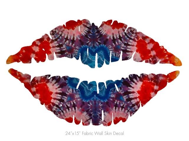 Tie Dye Star 100 - Kissing Lips Fabric Wall Skin Decal measures 24x15 inches