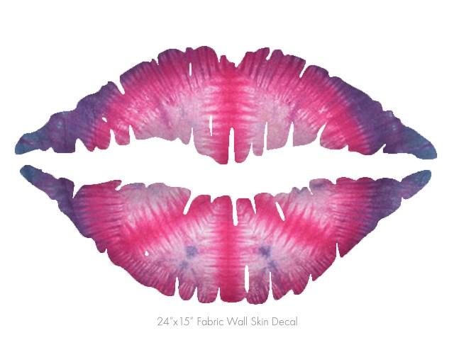Tie Dye Peace Sign 110 - Kissing Lips Fabric Wall Skin Decal measures 24x15 inches