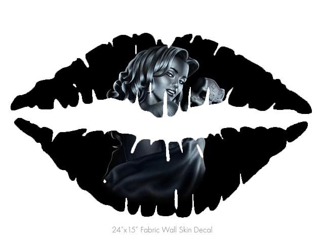 Two Face - Kissing Lips Fabric Wall Skin Decal measures 24x15 inches