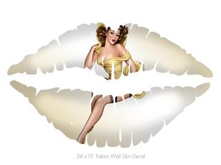 Rose Pin Up Girl - Kissing Lips Fabric Wall Skin Decal measures 24x15 inches
