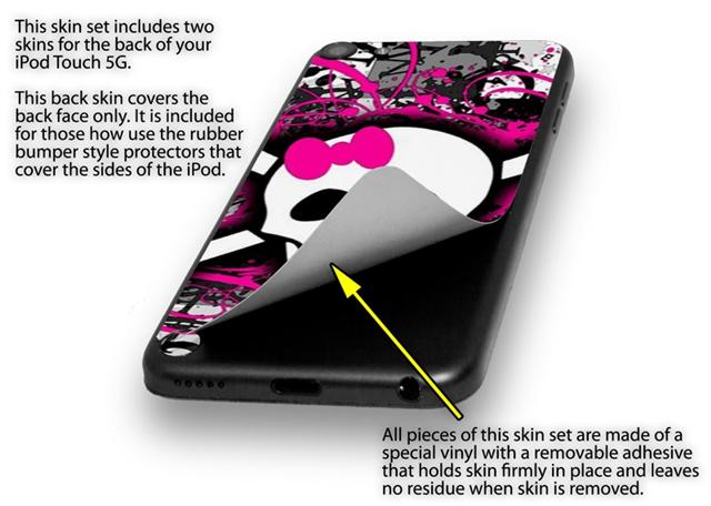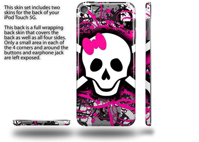 Splatter Girly Skull Decal Style Vinyl Skin - fits Apple iPod Touch 5G (IPOD NOT INCLUDED)