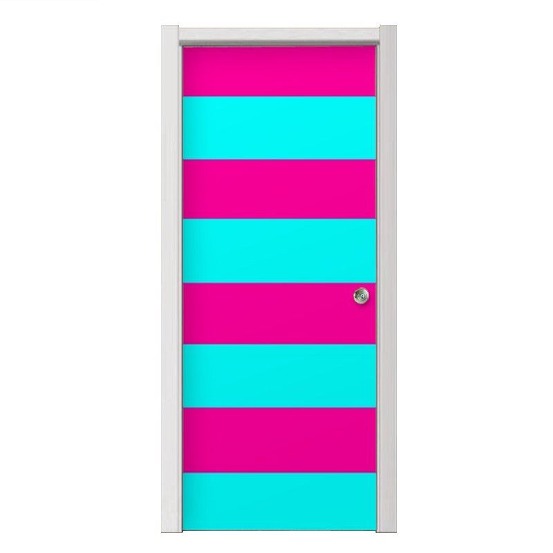 Psycho Stripes Neon Teal and Hot Pink Door Skin (fits doors up to 34x84 inches)