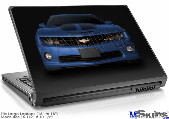Laptop Skin (Large) - 2010 Chevy Camaro Aqua - Black Stripes on Black
