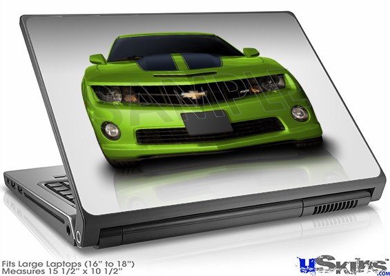 Laptop Skin (Large) - 2010 Chevy Camaro Green - Black Stripes