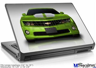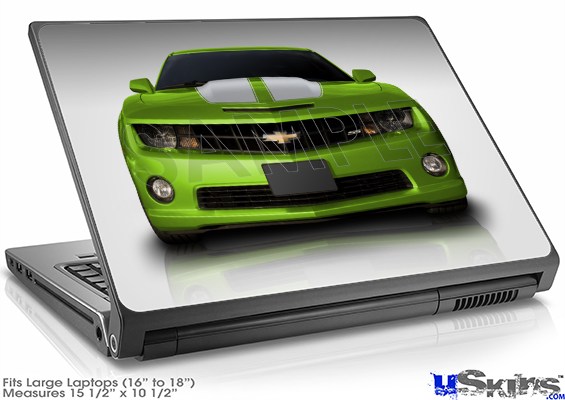 Laptop Skin (Large) - 2010 Chevy Camaro Green - White Stripes