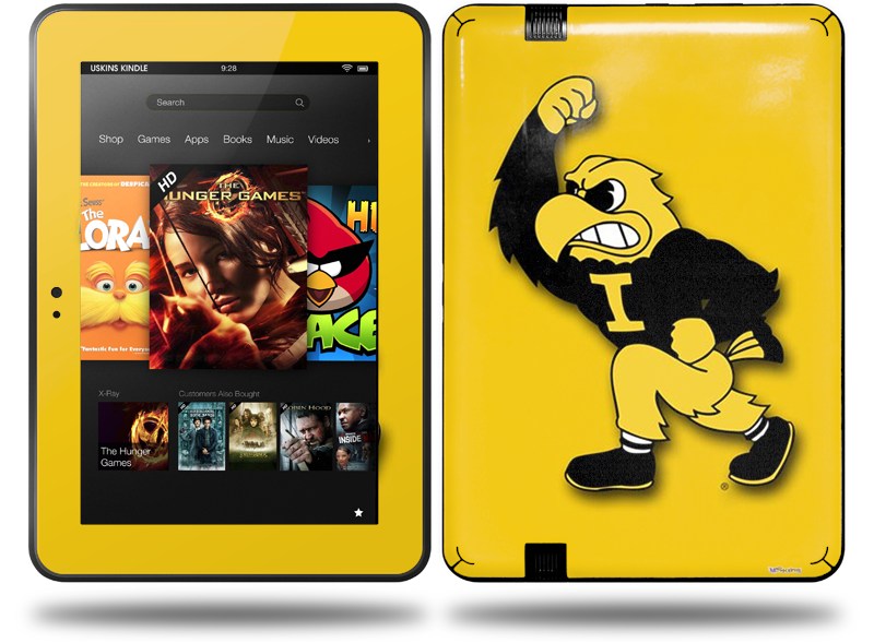 Iowa Hawkeyes Herky on Gold Decal Style Skin fits Amazon Kindle Fire HD 8.9 inch
