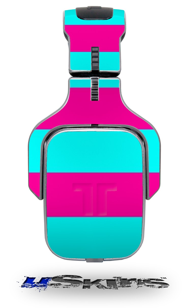 Psycho Stripes Neon Teal and Hot Pink Decal Style Skin (fits Tritton AX Pro Gaming Headphones - HEADPHONES NOT INCLUDED)