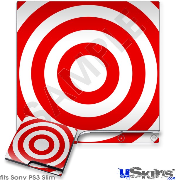 Decal Skin compatible with Sony PS3 Slim Bullseye Red and White