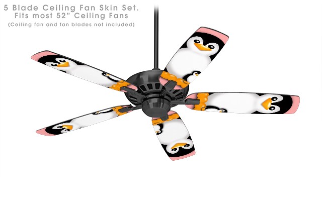 Penguins on Pink - Ceiling Fan Skin Kit fits most 52 inch fans (FAN and BLADES SOLD SEPARATELY)
