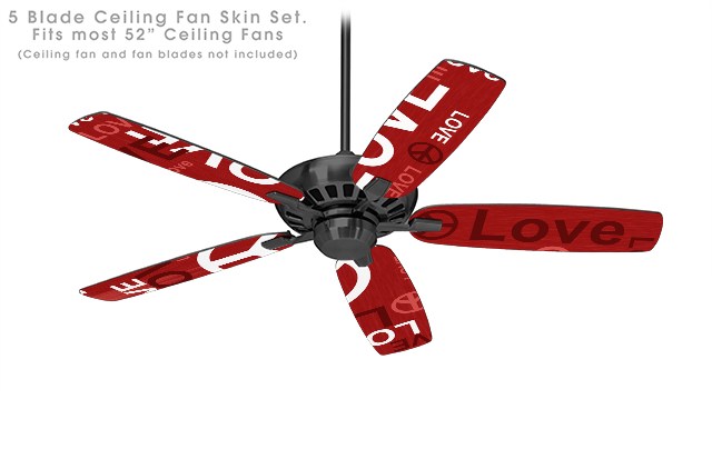 Love and Peace Red - Ceiling Fan Skin Kit fits most 52 inch fans (FAN and BLADES SOLD SEPARATELY)