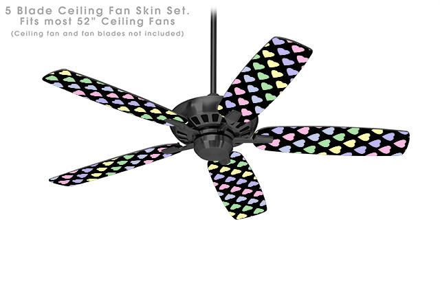 Pastel Hearts on Black - Ceiling Fan Skin Kit fits most 52 inch fans (FAN and BLADES SOLD SEPARATELY)