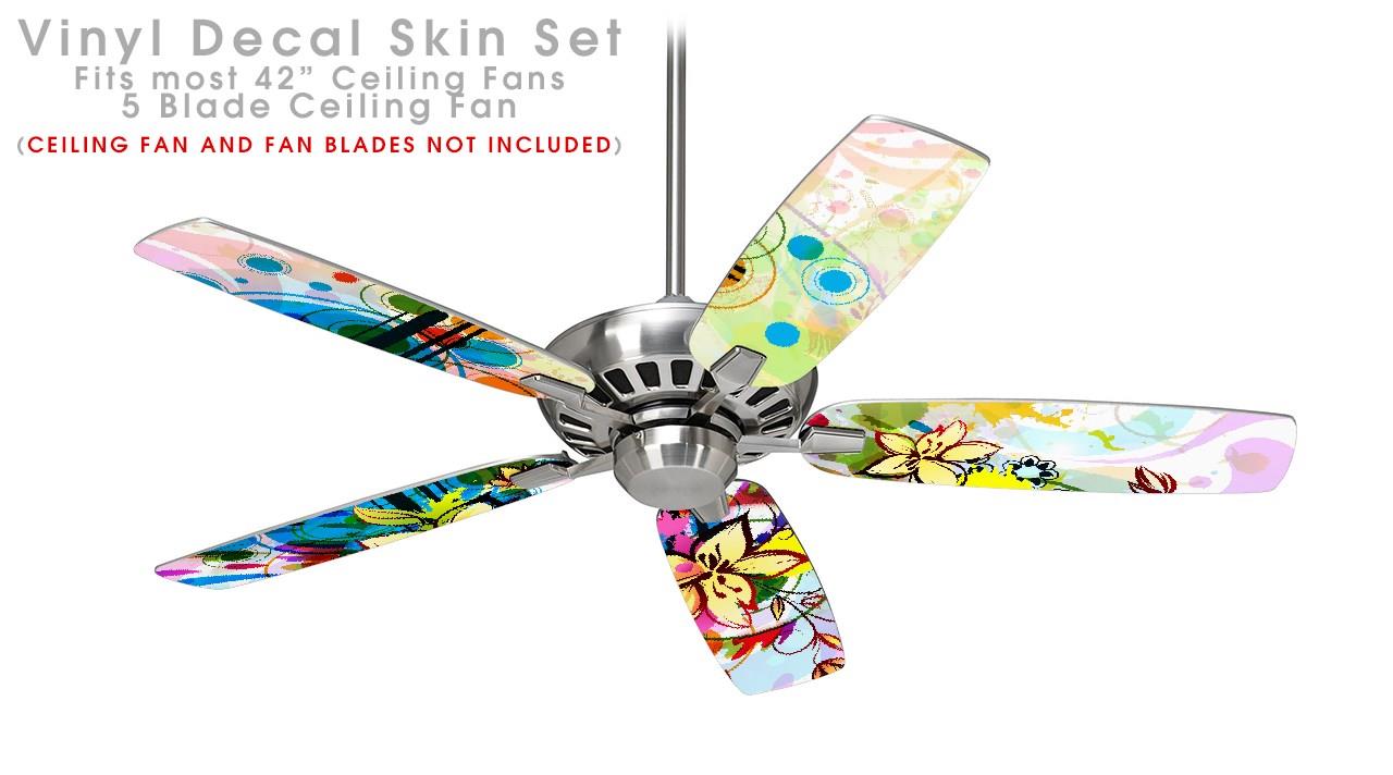 Floral Splash - Ceiling Fan Skin Kit fits most 42 inch fans (FAN and BLADES SOLD SEPARATELY)