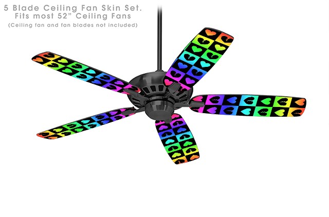 Love Heart Checkers Rainbow - Ceiling Fan Skin Kit fits most 52 inch fans (FAN and BLADES SOLD SEPARATELY)