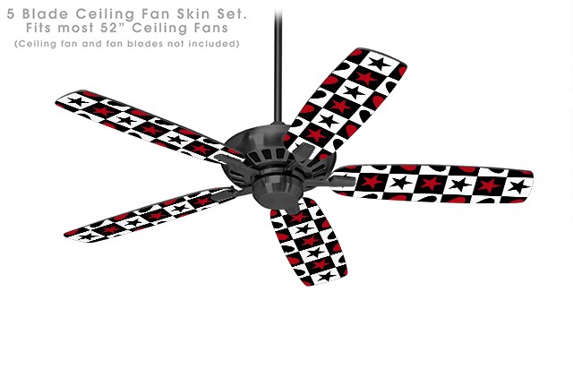 Hearts and Stars Red - Ceiling Fan Skin Kit fits most 52 inch fans (FAN and BLADES SOLD SEPARATELY)