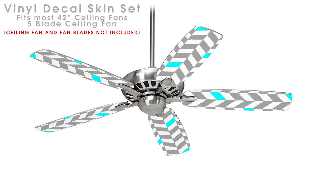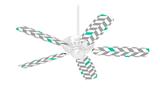 Chevrons Gray And Aqua - Ceiling Fan Skin Kit fits most 42 inch fans (FAN and BLADES SOLD SEPARATELY)