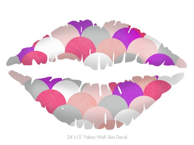 Brushed Circles Pink - Kissing Lips Fabric Wall Skin Decal measures 24x15 inches