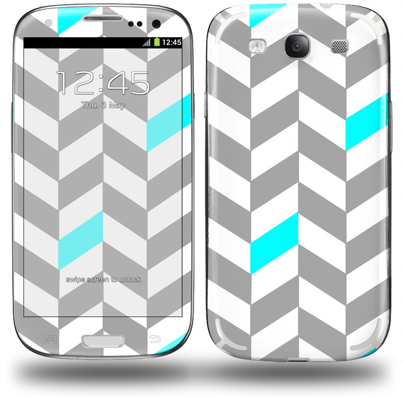 Chevrons Gray And Aqua - Decal Style Skin (fits Samsung Galaxy S III S3)