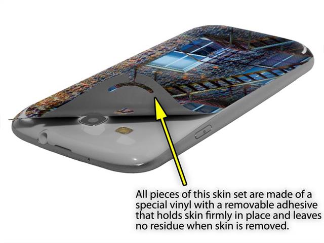 • Decal style vinyl skin covers front and back of Samsung Galaxy S III S3 phone.
