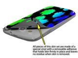 uSkins™ are self adhering vinyl skins that help prevent scratches and look great doing it. Unlike bulky silicon, plastic or metal cases and faceplates, uSkins are designed to be thin and very tough. uSkins are a composite of two layers of commercial grade materials. The bottom layer is a soft, flexible vinyl with a special removable adhesive that is easily positioned, applied without air bubbles, and effortlessly removed without leaving a sticky residue. Next we print the bottom layer with UV protected, fade resistant inks that deliver superb photo quality designs in vibrant colors. Finally we bond a professional grade laminate over the entire skin adding a glossy protective finish.