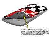 uSkins™ are self adhering vinyl skins that help prevent scratches and look great doing it. Unlike bulky silicon, plastic or metal cases and faceplates, uSkins are designed to be thin and very tough. uSkins are a composite of two layers of commercial grade materials. The bottom layer is a soft, flexible vinyl with a special removable adhesive that is easily positioned, applied without air bubbles, and effortlessly removed without leaving a sticky residue. Next we print the bottom layer with UV protected, fade resistant inks that deliver superb photo quality designs in vibrant colors. Finally we bond a professional grade laminate over the entire skin adding a glossy protective finish.