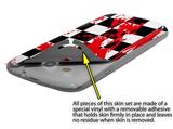 uSkins™ are self adhering vinyl skins that help prevent scratches and look great doing it. Unlike bulky silicon, plastic or metal cases and faceplates, uSkins are designed to be thin and very tough. uSkins are a composite of two layers of commercial grade materials. The bottom layer is a soft, flexible vinyl with a special removable adhesive that is easily positioned, applied without air bubbles, and effortlessly removed without leaving a sticky residue. Next we print the bottom layer with UV protected, fade resistant inks that deliver superb photo quality designs in vibrant colors. Finally we bond a professional grade laminate over the entire skin adding a glossy protective finish.