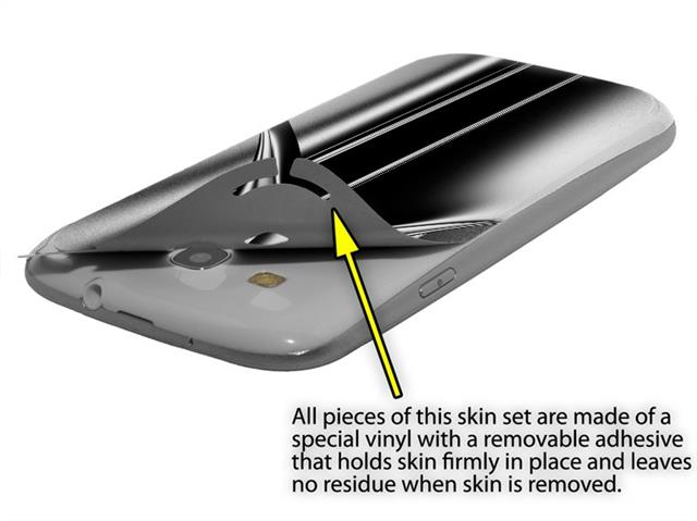 • Decal style vinyl skin covers front and back of Samsung Galaxy S III S3 phone.
