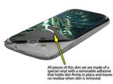 uSkins™ are self adhering vinyl skins that help prevent scratches and look great doing it. Unlike bulky silicon, plastic or metal cases and faceplates, uSkins are designed to be thin and very tough. uSkins are a composite of two layers of commercial grade materials. The bottom layer is a soft, flexible vinyl with a special removable adhesive that is easily positioned, applied without air bubbles, and effortlessly removed without leaving a sticky residue. Next we print the bottom layer with UV protected, fade resistant inks that deliver superb photo quality designs in vibrant colors. Finally we bond a professional grade laminate over the entire skin adding a glossy protective finish.