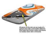 uSkins™ are self adhering vinyl skins that help prevent scratches and look great doing it. Unlike bulky silicon, plastic or metal cases and faceplates, uSkins are designed to be thin and very tough. uSkins are a composite of two layers of commercial grade materials. The bottom layer is a soft, flexible vinyl with a special removable adhesive that is easily positioned, applied without air bubbles, and effortlessly removed without leaving a sticky residue. Next we print the bottom layer with UV protected, fade resistant inks that deliver superb photo quality designs in vibrant colors. Finally we bond a professional grade laminate over the entire skin adding a glossy protective finish.